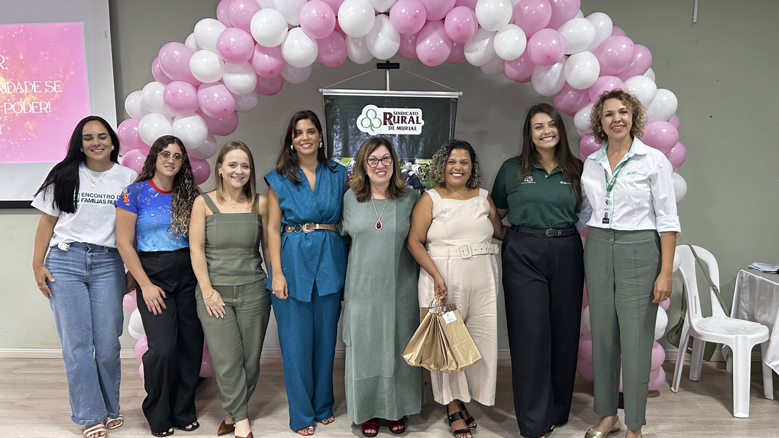 O presidente do Sindicato Rural de Muriaé, Altomirando Veiga, ao lado das participantes do evento “Mulheres Guerreiras”, que reuniu mulheres de diferentes áreas para um momento de valorização, troca de experiências e fortalecimento do protagonismo feminino. O encontro destacou a importância da presença e da atuação das mulheres na sociedade e no meio rural.