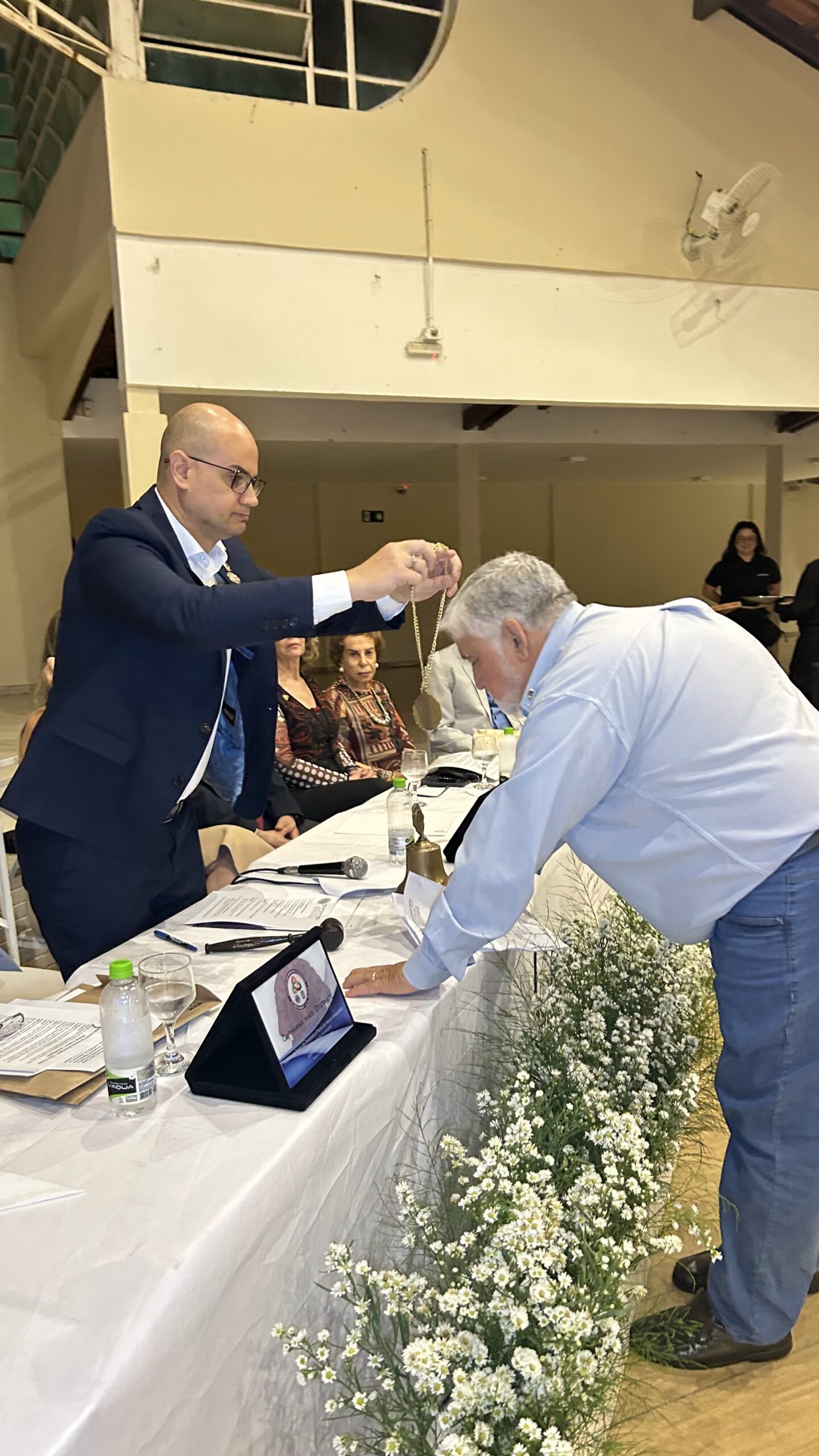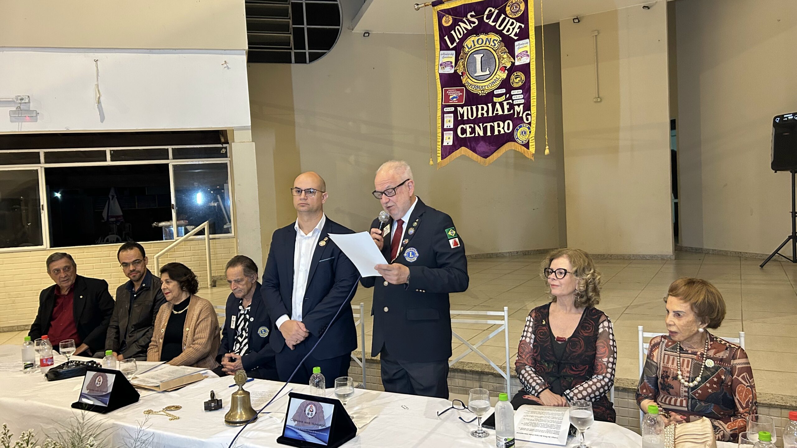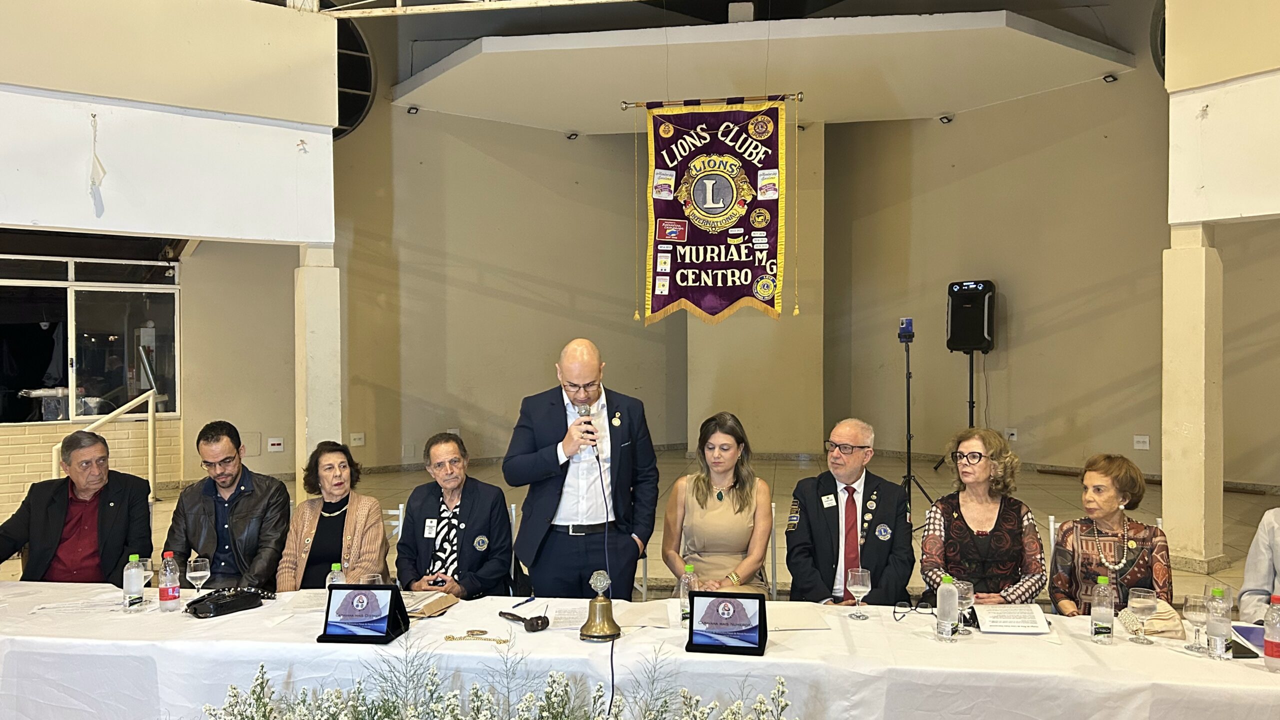 Com o toque do sino, o presidente Fabiano Vaz inicia oficialmente seu mandato à frente do Lions Clube Muriaé Centro. Um gesto simbólico que marca o compromisso de servir e transformar vidas por meio do voluntariado e da solidariedade