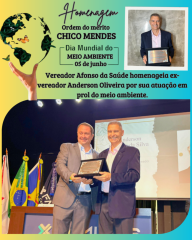 “Essa homenagem é mais que merecida. Anderson foi uma voz ativa na Câmara em defesa da natureza e continua contribuindo para nossa cidade por meio de sua atuação no Demsur. É um exemplo de servidor público comprometido com o bem comum”, declarou Afonso.
